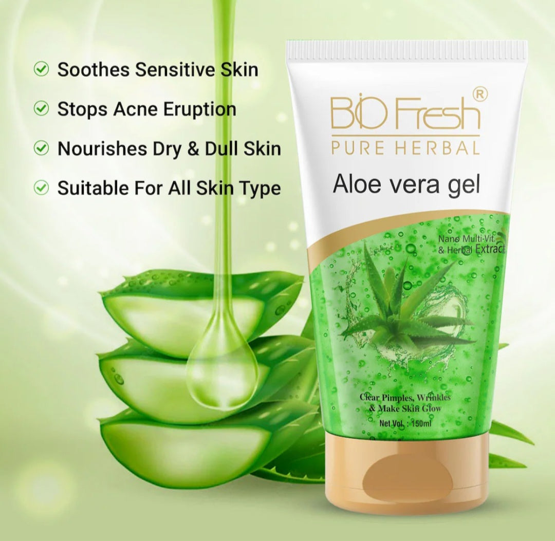 Aloe Vera Gel- BioFresh Pure Herbal's Multipurpose Aloe Vera Gel which Clear Pimples, Wrinkles & Makes the Skin Glow 150ml