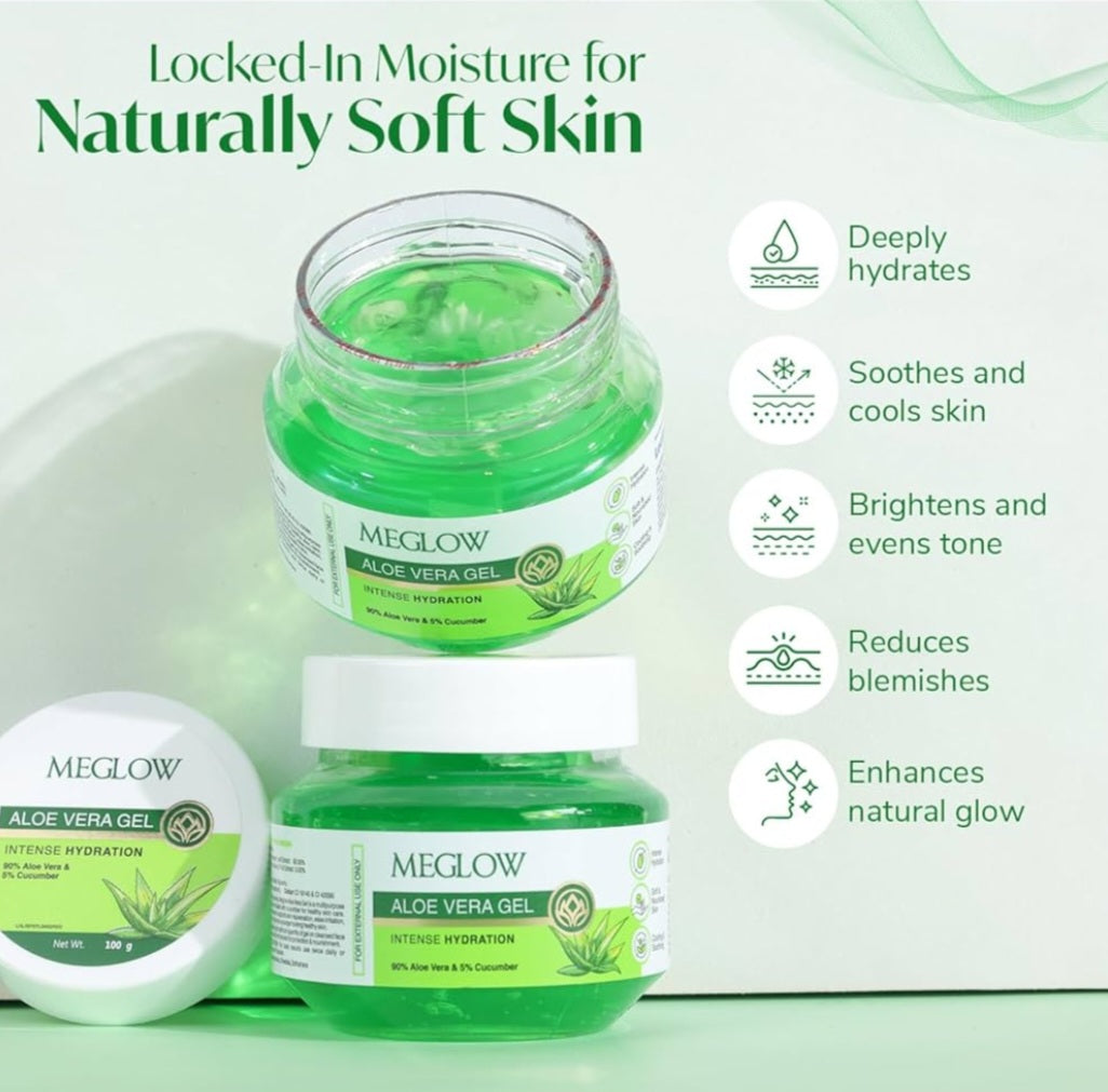 Aloe Vera Gel- MeGlow Aloe Vera Gel with Cucumber extract for Intense Hydration 100gm