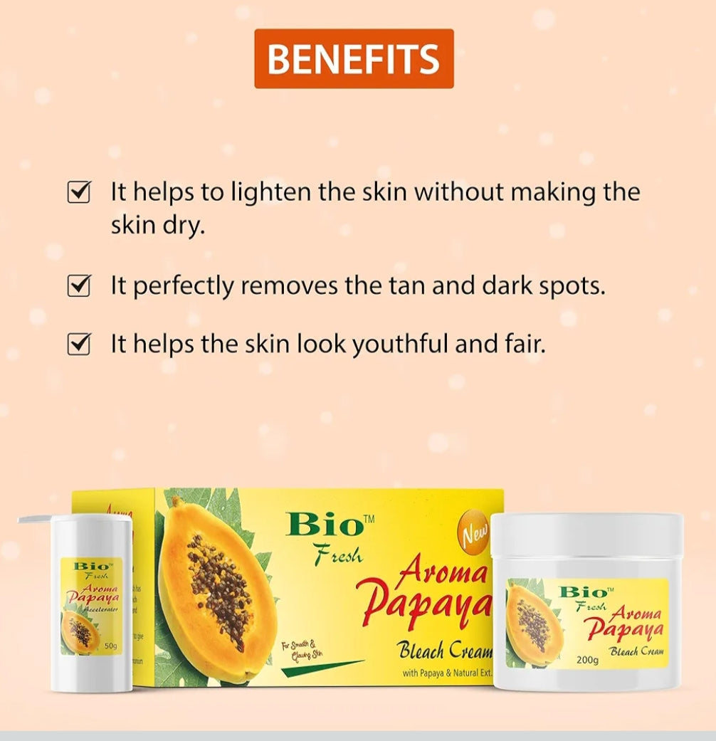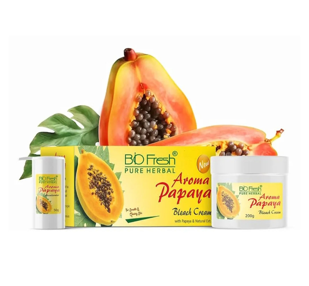 Bleach Cream- BioFresh Aroma PAPAYA Bleach Cream with Papaya & Natural Extract for Smooth & Glowing Skin 43gm (Bleach Cream 35gm & Accelerator 8gm)