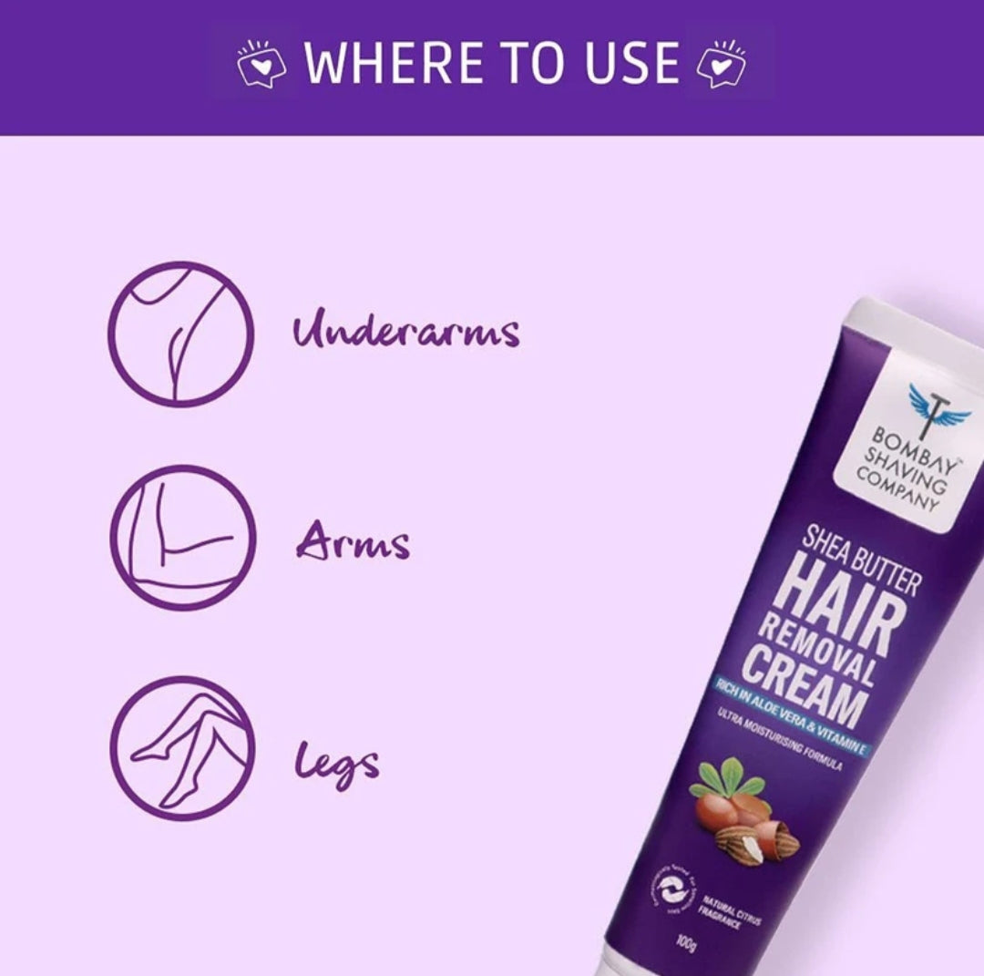 Hair Removal- Bombay Shaving Company's Shea Butter Hair Removal Cream Enriched with Aloe Vera & Vitamin-E which is Ultra Moisturizing Cream with Natural Citrus Fragrance - 100gm