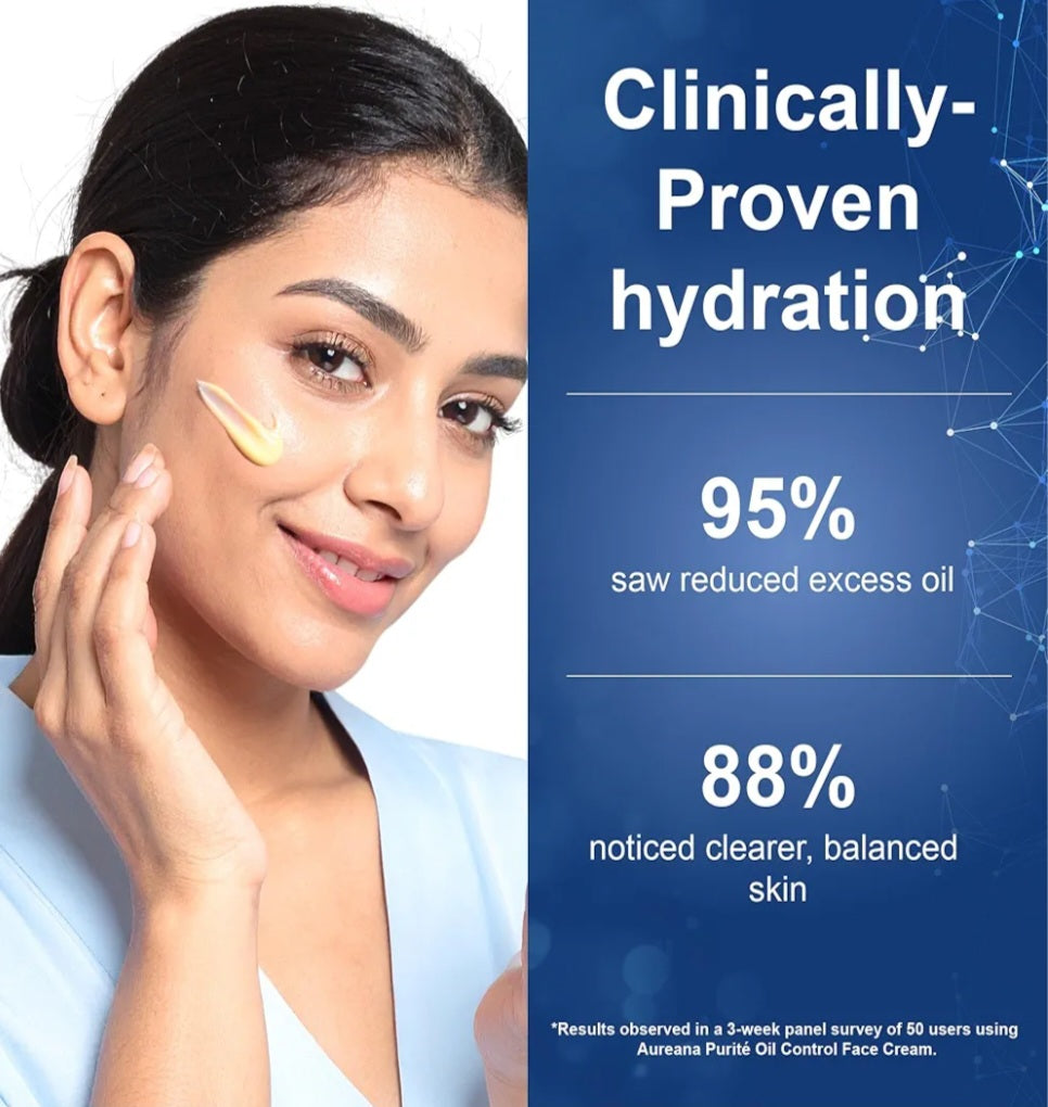 Lotions & Moisturizers- AUREANA Purite Dermatologically Tested Oil Control Moisturizing Cream enriched with Green Tea Extracts & Calendula Extracts - 50gm