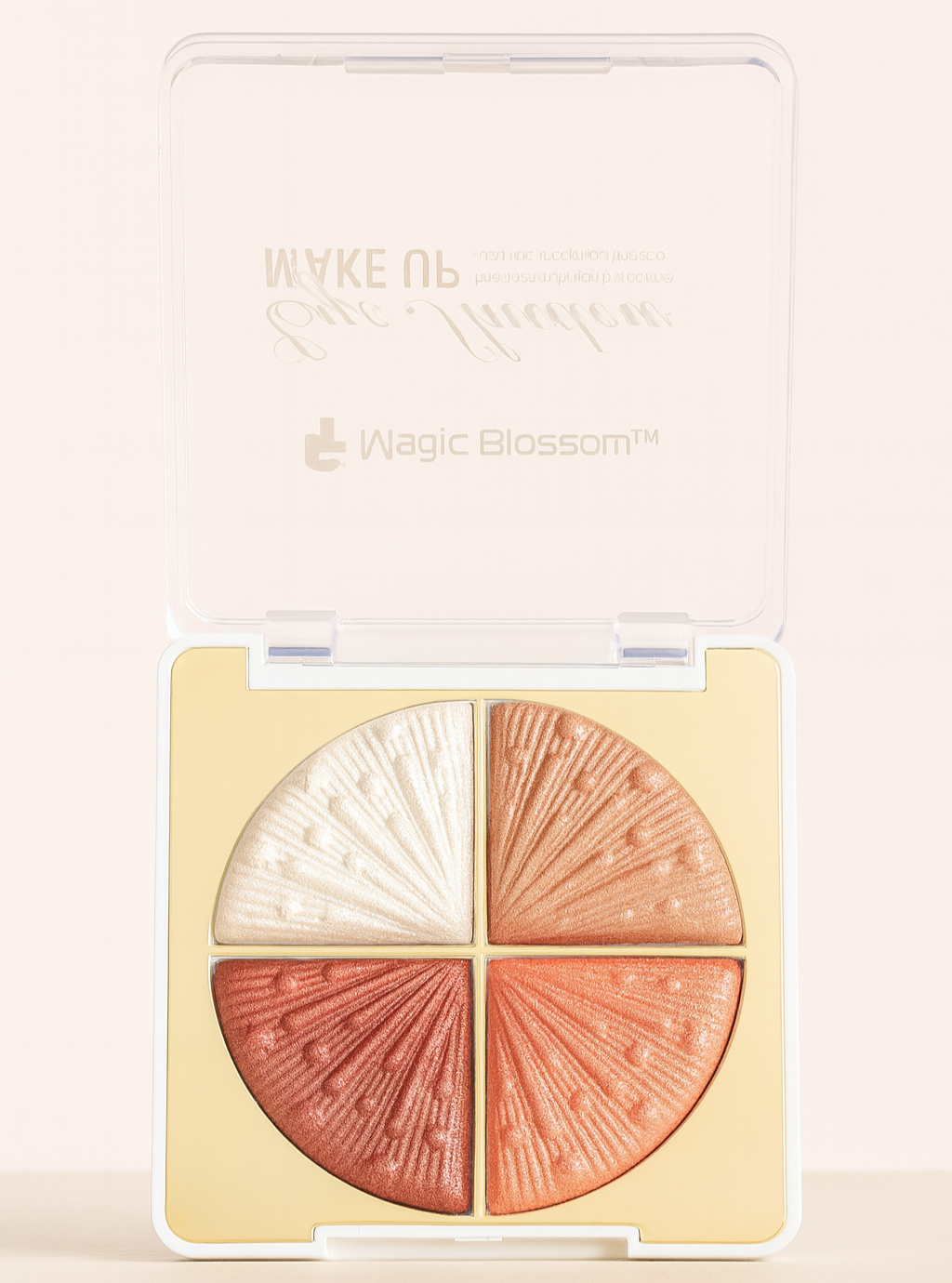 Makeup Eyeshadow- Face Tech's Magic Blossom 4-Color 2-in-1 Makeup Eyeshadow & Highlighter Palette (Shade-01) - 12gm